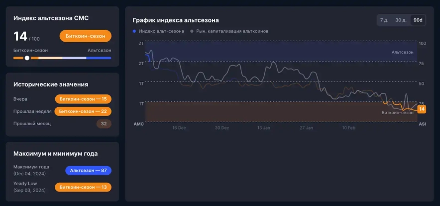 Индекс альтсезона – это показатель, который показывает, насколько альткоины растут быстрее, чем биткоин.