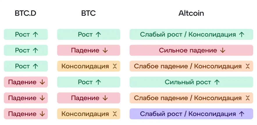Одним из главных индикаторов является доминирование BTC. Этот показатель отражает долю BTC в общей капитализации рынка.