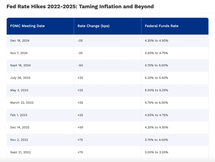 Чтобы сбить инфляцию, ФРС подняла ставку до диапазона 5.25-5.50% (пик цикла в 2023), а затем впервые снизила ее на -0.50 п.п. 18 сентября 2024 (до 4.75-5.00%).