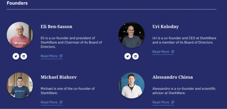 StarkNet был создан израильской криптографической компанией StarkWare Industries, которая была создана в 2018 году. Ее основатели: известный криптограф, профессор одного из наиболее престижных университетов Израиля Technion, а также один из разработчиков STARK – Эли Бен-Сассон, Юрий Колодный, Майкл Риабцев (соавтор ZK-STARK) и Алессандро Чиесса (сооснователь Zcash).