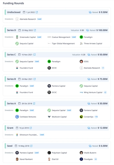 Всего StarkNet собрал 282.5 млн долларов США во время всех раундов инвестирования.