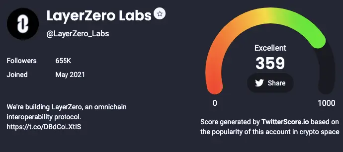 Проект имеет 655K подписчиков в X, с TwitterScore 359 (Excellent). Это говорит о хорошем маркетинге проекта.