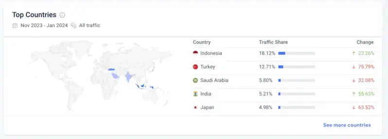 Трафик на сайте 2.15М (в основном бедные страны: Индонезия, Турция, Индия).
