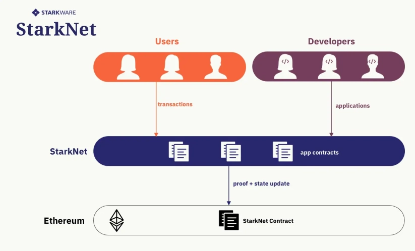 StarkNet – это децентрализованная сеть второго уровня (L2) для Ethereum, которая использует технологию доказательства с нулевым разглашением (ZK-STARK) для масштабирования сети.