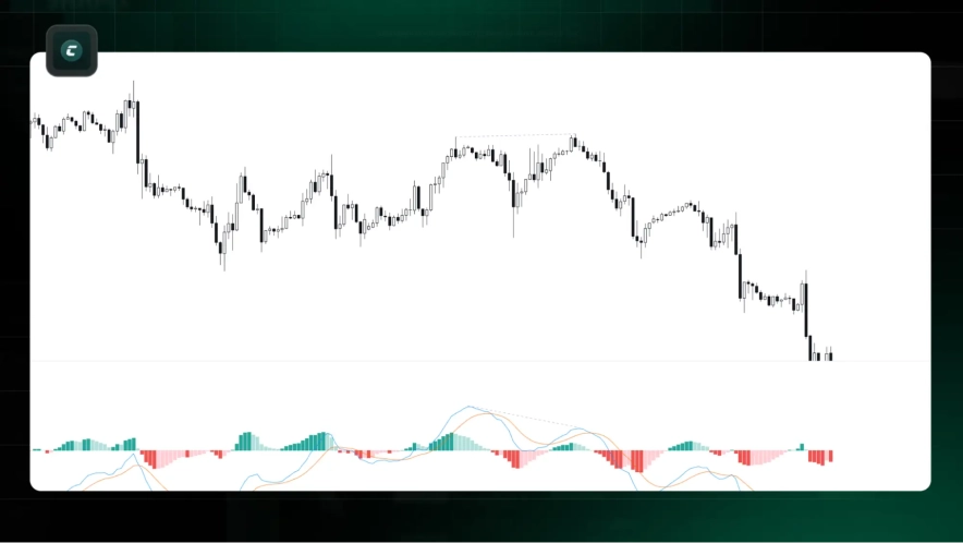 - Медвежья дивергенция: когда цена формирует более высокие максимумы, но MACD формирует более низкие максимумы. Это сигнализирует о потенциальном развороте к снижению.