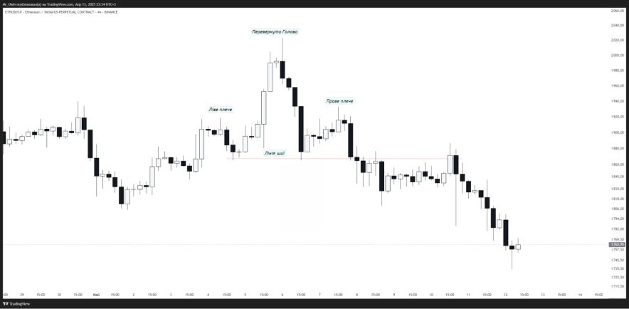 Один из самых известных и надежных разворотных паттернов. Состоит из трех пиков - средний (голова) выше двух других (плечи). Пробой линии "шеи" часто подтверждает разворот тренда вниз.