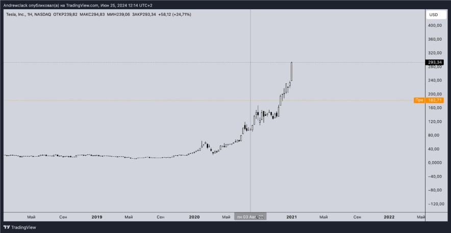 Tesla решила провести сплит акций в соотношении 1 к 3, что приведет к снижению цены акций примерно до $300. 5 августа 2022 года акционеры Tesla одобрили дробление акций, поскольку производитель электромобилей стремится привлечь больше розничных инвесторов. По информации Bloomberg, сплит снизит стоимость акций Tesla до отметок в $300. Спустя время после объявления новости актив ушел на коррекцию.