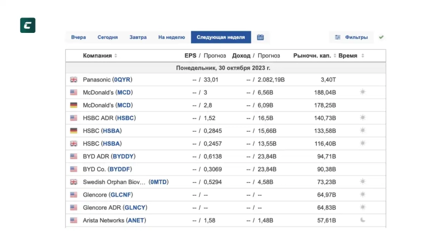 - Календари отчетностей и событий: важным также является отслеживание обновлений финансовых результатов и экономических показателей. Для этого инвесторы используют календари отчетности, где четко обозначены даты публикаций отчетов компаний и выхода статистических данных.