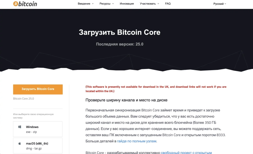 Если вы решили установить полную BTC ноду, то для этого вам нужно перейти на сайт bitcoin.org и загрузить клиент Bitcoin Core.