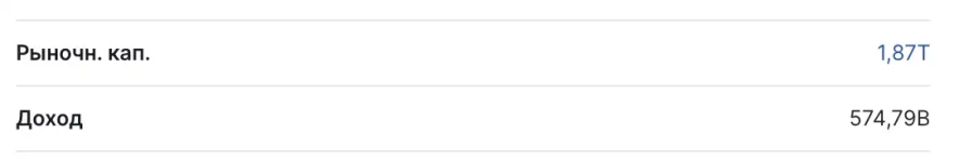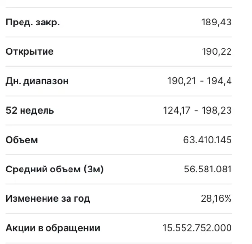 193.42 (цена одной акции) х 15 552 752 000 (количество акций в обращении) = 3 008 213 291 840 – рыночная капитализация компании Apple. Возьмем компанию поменьше.