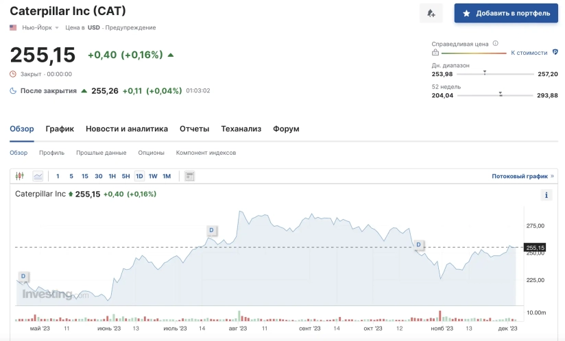 Да, конечно, эти компании из совершенно разных сфер деятельности, тем не менее попробуем сравнить их по цифрам, которые у нас есть. Акции компании Caterpillar дороже, чем акции компании Apple. И тем не менее, несмотря на более высокую цену акций компании Caterpillar, рыночная капитализация компании Apple гораздо выше. Поэтому при сравнении подобных метрик не забывайте, что не только цена говорит нам о рыночном положении компании на рынке, но и количество актива в обращении и, соответственно, капитализация.