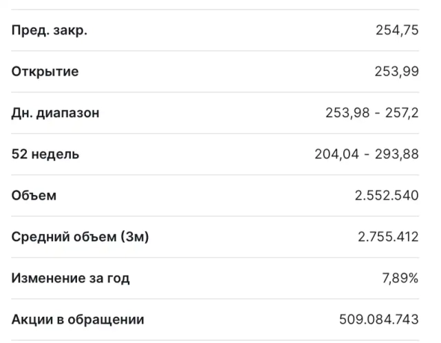 Одна акция стоит 255.15$, а всего в обращении 509 084 743. Значит, рыночная капитализация компании равна 129 892 972 176$, то есть чуть больше, чем 129.89 миллиардов долларов США.