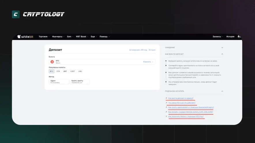 Способов пополнения большое множество, необходимо лишь следовать инструкциям биржи. Также же есть статьи подсказки для каждого из способов пополнения.