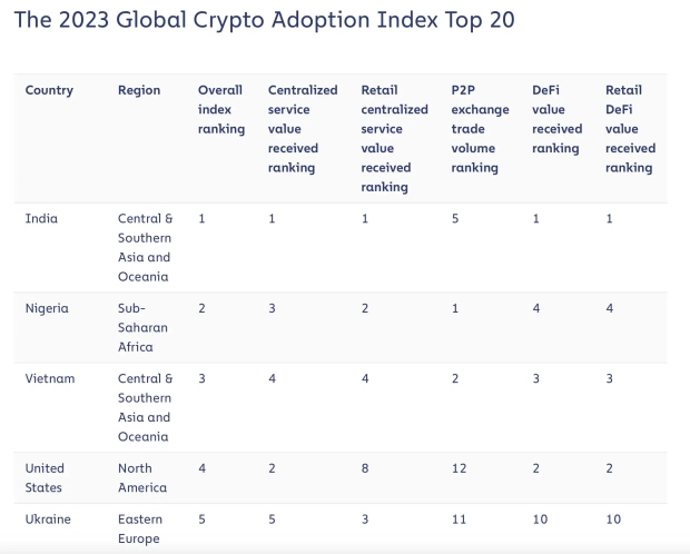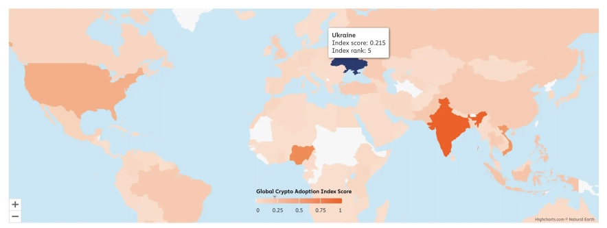 Украина находится на 5 позиции в списке стран, чьи граждане держат криптовалюту в 2023 году по данным исследовательской компании Chainalysis.
