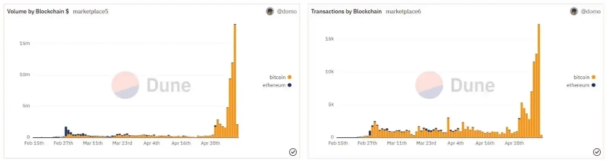 Популярность токена активно росла, и это было хорошо видно по растущим объемам и количеству транзакций связанных с BRC-20.