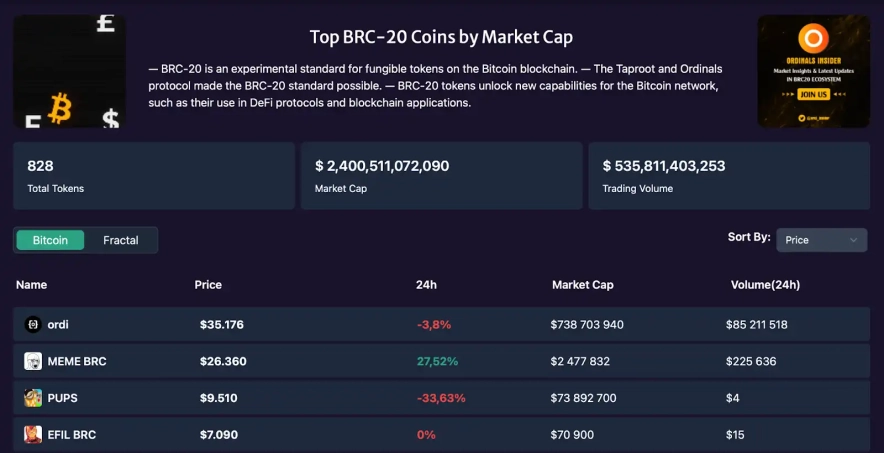 История BRC-20 началась с токена $ORDI – первого в мире токена такого рода. Созданный, как мем для демонстрации нового стандарта. В итоге он начал набирать большую популярность.