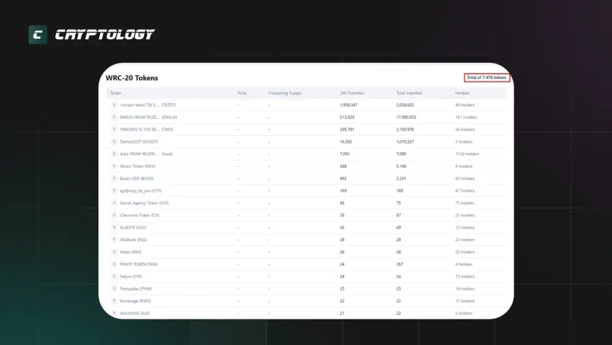 7478 тестових токенів, створених на основі стандарту WRC-20.