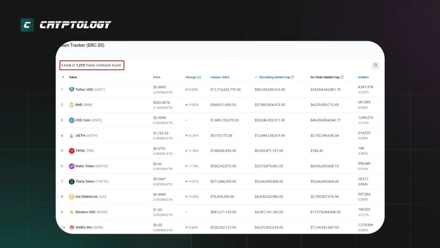 1275 основных токенов созданных на базе стандарта ERC-20.