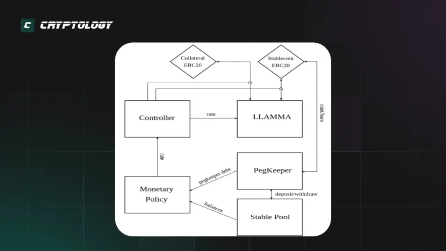 Как система удерживает привязку к 1 доллару? В этом участвует модуль PegKeeper отвечающий за монетарную политику.