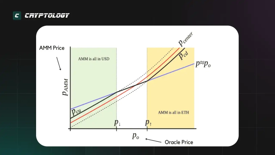 Когда цена больше 1, ставка заимствования чрезвычайно мала (стремится к 0). Когда цена меньше 1, ставка заимствования быстро увеличивается. Это заставит заемщиков, выпустивших crvUSD, быстро погасить свой долг. В противном случае их залог может быть ликвидирован.