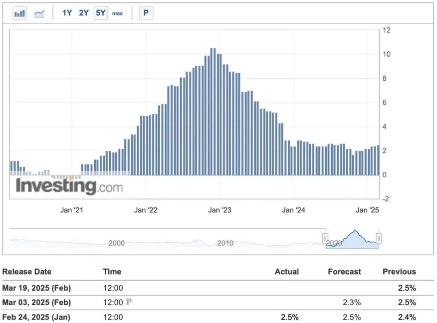CPI - Индекс Потребительских Цен в еврозоне, ключевой индикатор инфляции, который влияет на решения Европейского центрального банка (ЕЦБ). Завтра ожидается снижение годового показателя на 0,2%, что говорит о возможном снижении.