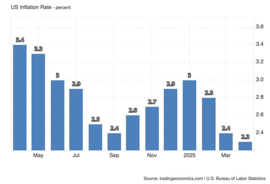Годовая инфляция CPI в США в апреле достигла циклического минимума на уровне 2.3%, а в июне ожидается отскок до 2.5%. Это делает релиз особенно важным с точки зрения риторики ФРС перед ближайшим заседанием.