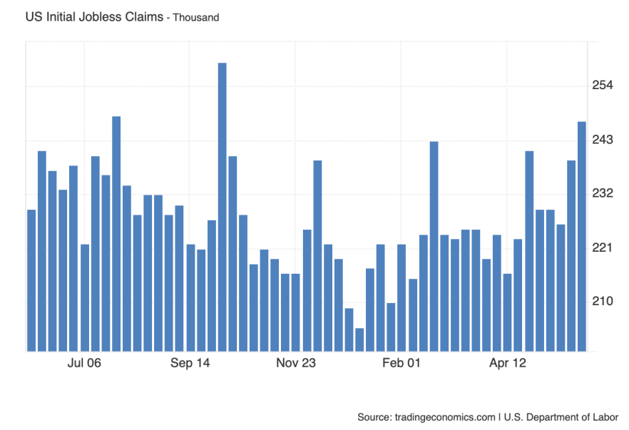 Еженедельный релиз по Initial Jobless Claims остаётся важным оперативным индикатором состояния рынка труда в США. Несмотря на сезонные колебания, в последние недели наблюдается уверенное движение вверх — предыдущий показатель составил 247 тыс., и прогноз на текущую неделю чуть ниже — 241 тыс.