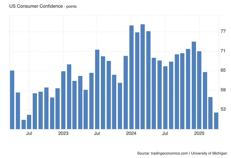 После длительного периода слабости потребительский сентимент в США впервые показывает признаки роста, хоть и остаётся на исторически низких уровнях.