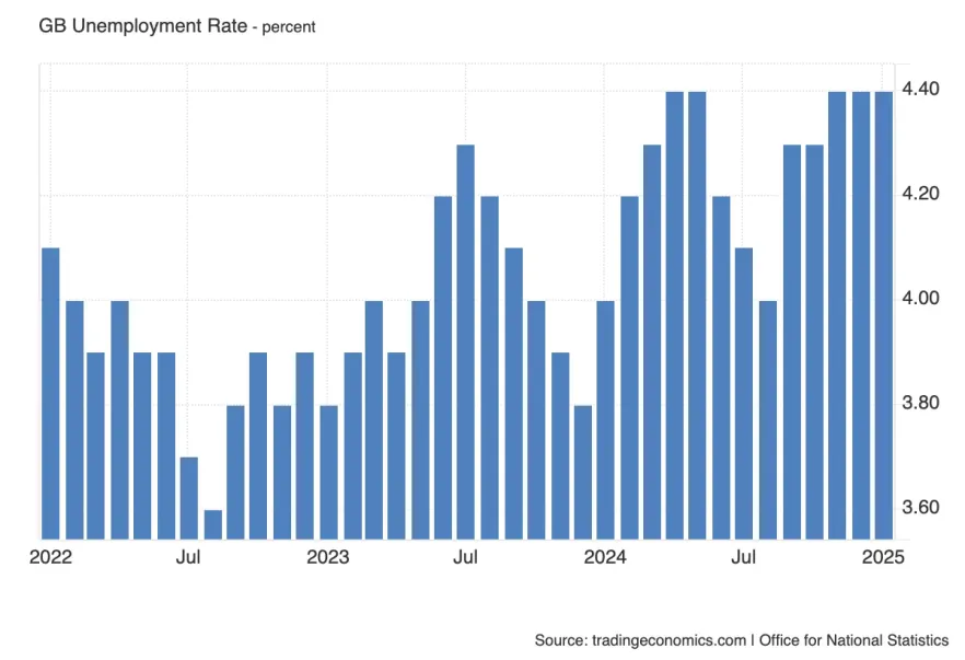 Прогноз указывает на продолжение стабилизации уровня безработицы. Если фактическое значение окажется выше — это усилит ожидания снижения ставки уже летом, что окажет давление на GBP.
