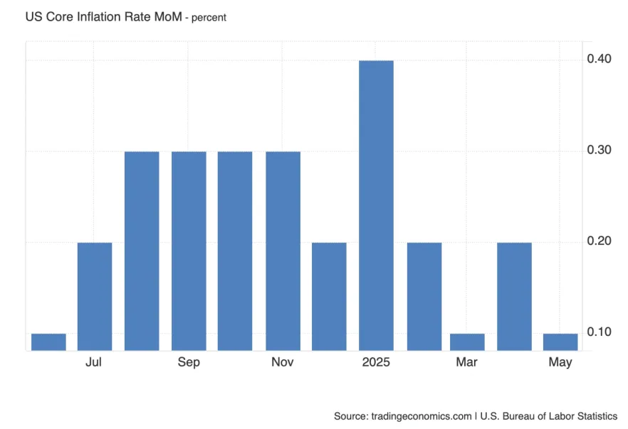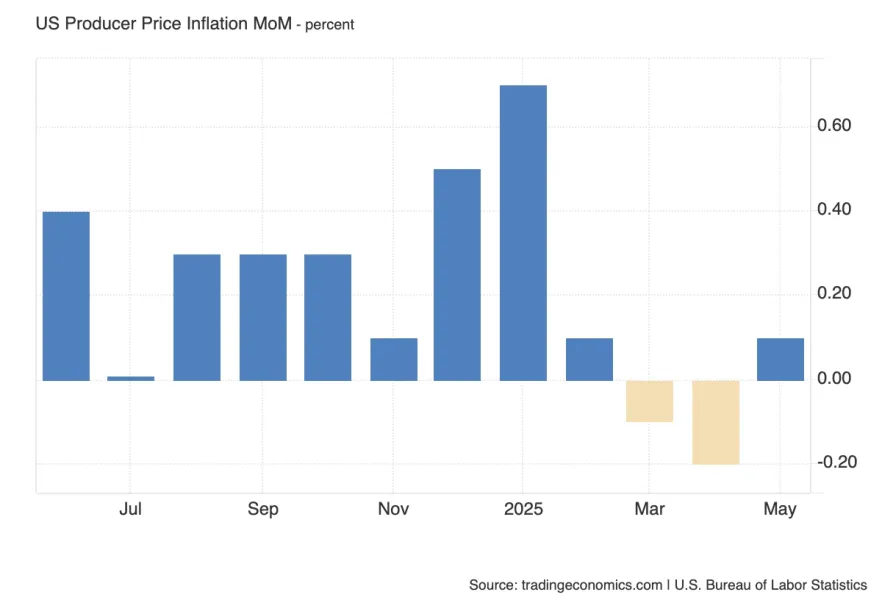 Ожидается рост до 0.3% после слабого 0.1% в мае — это станет проверкой заявлений ФРС о давлении со стороны пошлин. Рынки ждут подтверждения ускорения, и сюрприз вниз может вызвать ослабление доллара и рост облигаций, как это было в прошлом месяце.