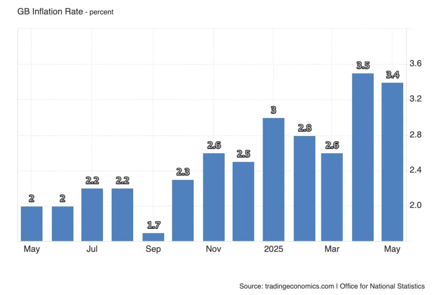 Инфляция остаётся главной проблемой для британской экономики — после технического скачка цен из-за роста коммунальных и транспортных тарифов ожидалось охлаждение, но этого не происходит. Если индекс вернётся к уровню 3.5%, это станет тревожным сигналом для рынков. В таком случае возможна распродажа гособлигаций Великобритании на фоне сомнений в способности Банка Англии продолжать смягчение политики.