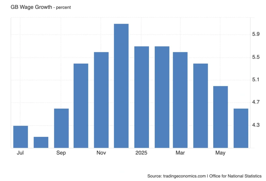 Этот показатель отражает динамику заработных плат в Великобритании за последние три месяца в годовом выражении. Для Банка Англии это один из ключевых индикаторов, так как именно рост зарплат определяет давление на базовую инфляцию. Если зарплаты продолжают расти быстрее 4%, это говорит о том, что внутренние инфляционные риски сохраняются, и регулятору будет сложно оправдывать мягкую политику. Для фунта такие данные становятся поддержкой. Наоборот, слабый рост заработков будет сигнализировать, что инфляция постепенно снимается органично, и у Банка Англии появляется больше пространства для снижения ставки.
