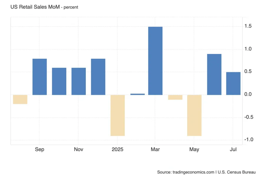 Общий показатель розничных продаж включает автомобили и топливо, поэтому он более волатилен. Тем не менее, для рынка важен именно тренд: если рост окажется выше ожиданий, это подтвердит устойчивость спроса, а слабые данные станут очередным сигналом замедления экономики. В условиях, когда ФРС находится в шаге от смягчения, рынок будет особенно чувствителен к этой публикации.