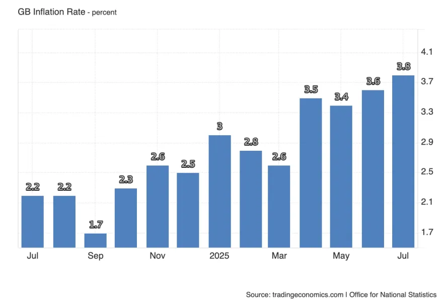 Годовой индекс потребительских цен — главный индикатор инфляции в Великобритании. Ожидается сохранение на уровне 3.8%, что указывает на замедление, но всё ещё слишком высокие значения относительно цели в 2%. Если инфляция окажется выше, рынок увидит, что давление на цены сохраняется, и фунт получит поддержку. Если ниже — ожидания смягчения политики Банка Англии усилятся.