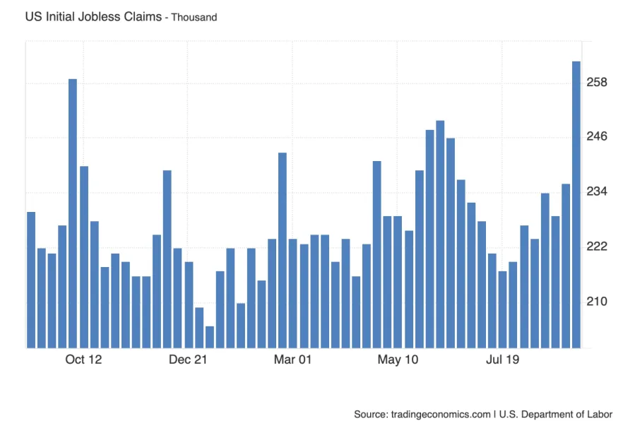 Число первичных заявок на пособие по безработице в США. Индикатор состояния рынка труда в реальном времени. Рост заявок будет сигнализировать о дальнейшем охлаждении экономики, что поддерживает мягкую позицию ФРС. Снижение заявок — наоборот, укрепит доллар.