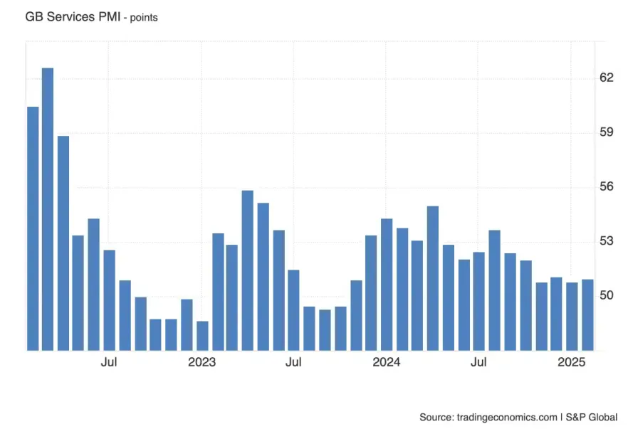 Если же индекс снизится или окажется ниже 50, это будет сигналом ослабления экономики и может усилить ожидания скорого снижения ставок со стороны Банка Англии, оказав давление на GBP.