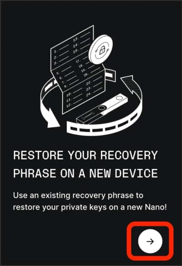 Сперва создайте ПИН-код из 4-8 цифр, который будет использоваться для разблокировки устройства. Затем достаньте записанную менимоническую фразу из 24 слов, которую нужно будет ввести. Ваша фраза восстановления - это полная резервная копия приватных ключей, которые обеспечивают доступ к вашим криптоактивам. Она необходима для восстановления доступа к вашим криптоактивам в случае потери устройства.