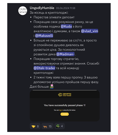 Наразі з усього обʼєму курсу пройшов лише пакет Beginner, але і цього вистачило, щоб підняти свій рівень! Зрозумів, що до цього я не знав, як працює ринок. Наразі беру участь в повномасштабній торгівлі, але знання, отримані в курсі, вже відчутно допомаг